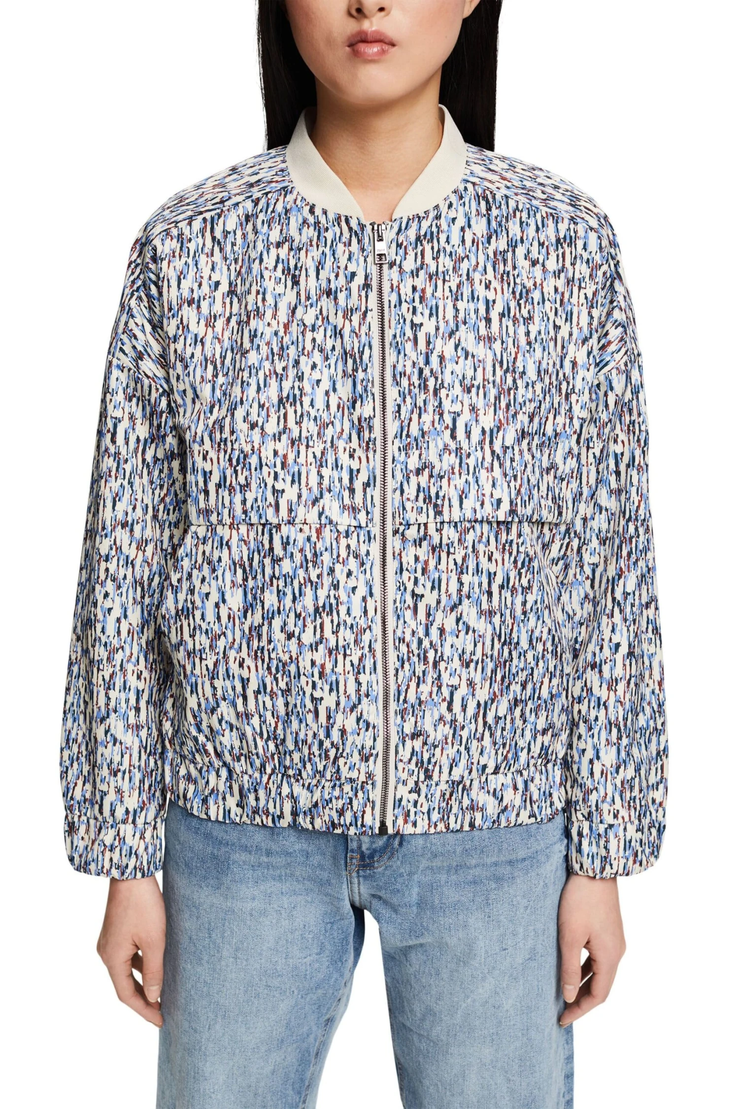 * Wetterfestes Obermaterial und Innenfutter aus recycelter Faser * Bunter Allover-Print * Farbig abgesetzter Bomberkragen aus Rippstrick * Über einen Metallzipper zu öffnen * Seitliche Eingriffstaschen mit darüberliegender, dekorativer Blende * Eingefasste Gummibündchen an Ärmelenden und Saum * Gerade Passform Pflegehinweise: 40°C Pflegeleicht, Nicht bleichen, Nicht im Wäschetrockner trocknen, Mäßig heiß bügeln, Nicht trockenreinigen