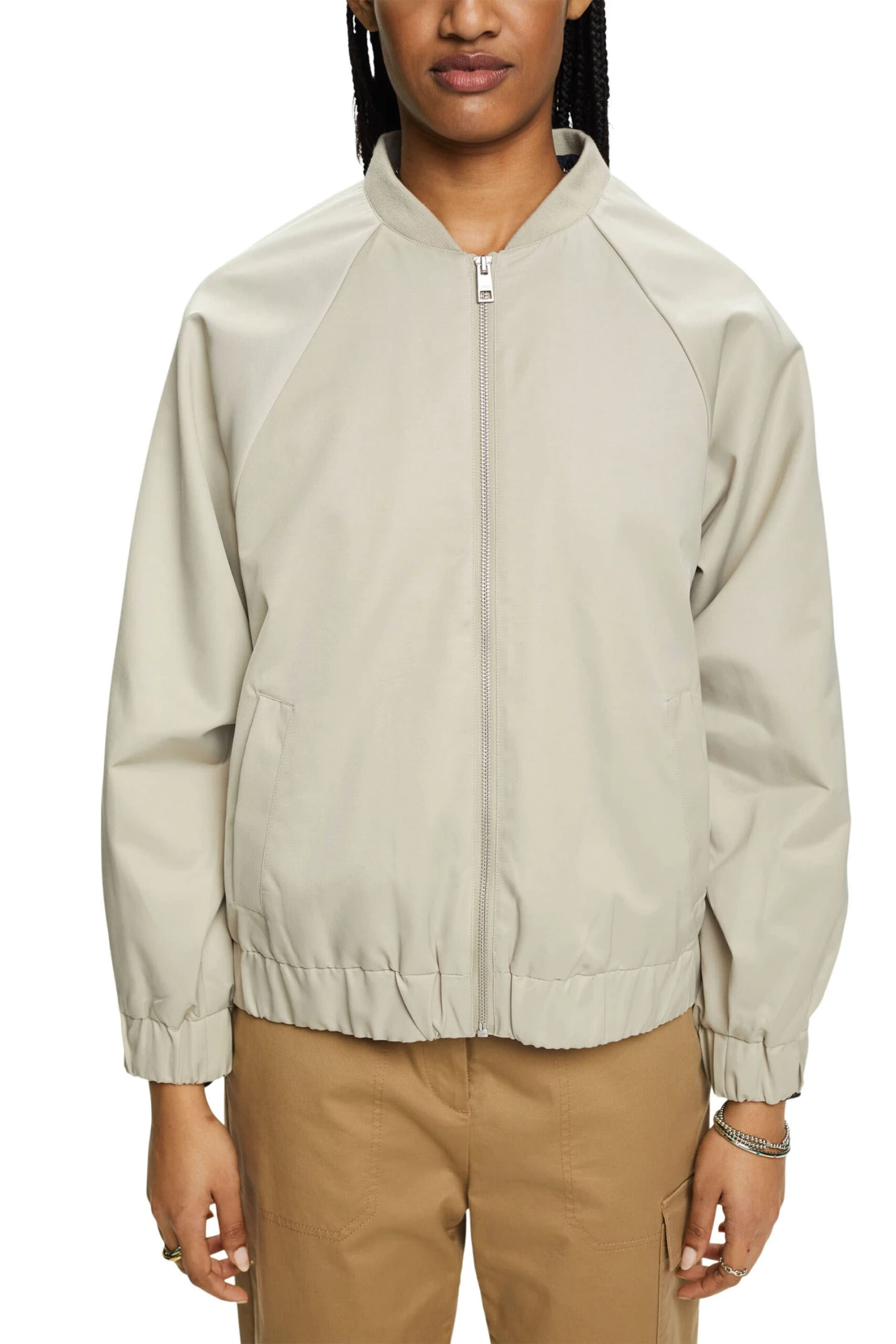 * Leichter Webstoff * Blousonkragen, aus Rippstrick * Durchgehender Zipper * Raglanärmel mit Gummizugbündchen * Saum mit Gummizug * Zwei seitliche Taschen * Lockerer Oversize-Schnitt Pflegehinweise: 30°C Pflegeleicht, Nicht bleichen, Schonende Trocknung, Nicht heiß bügeln