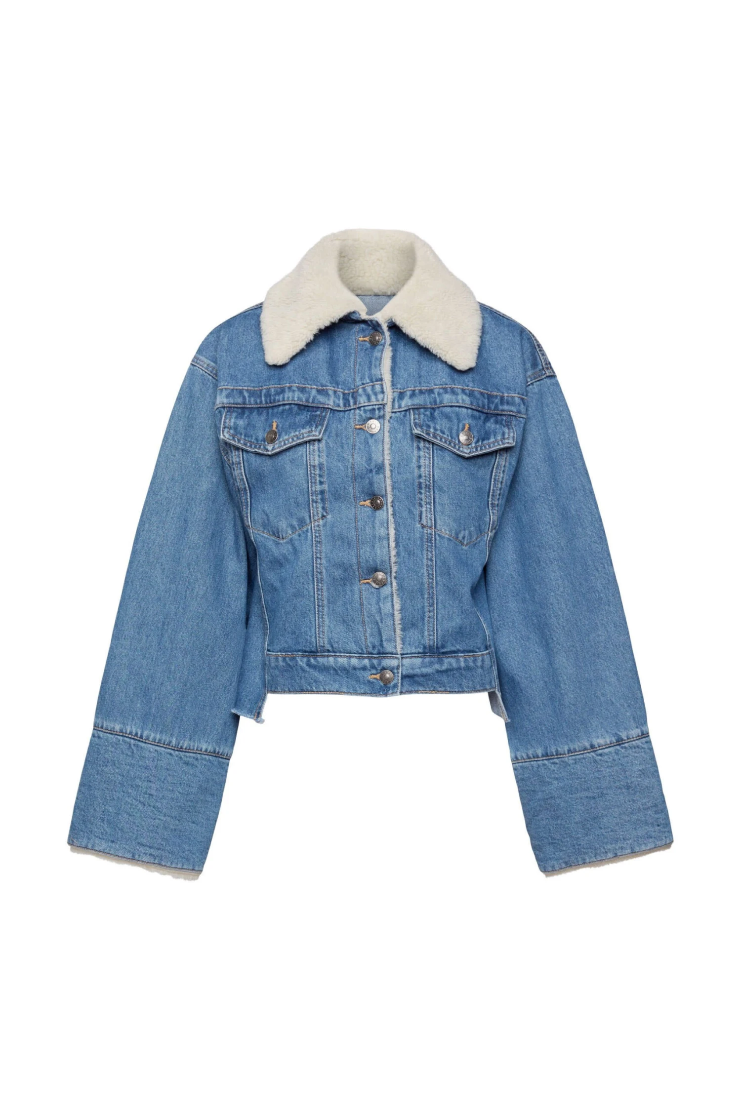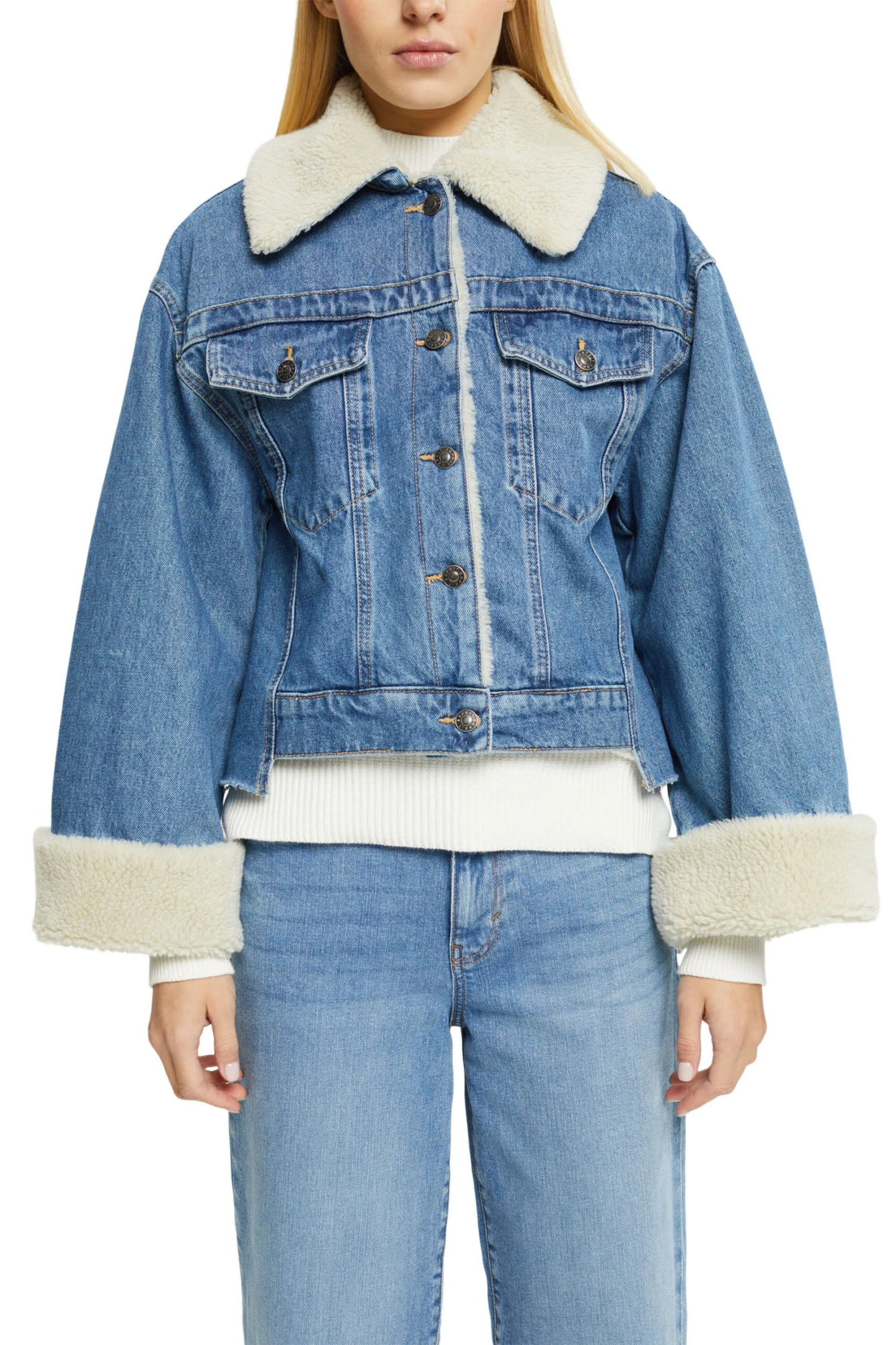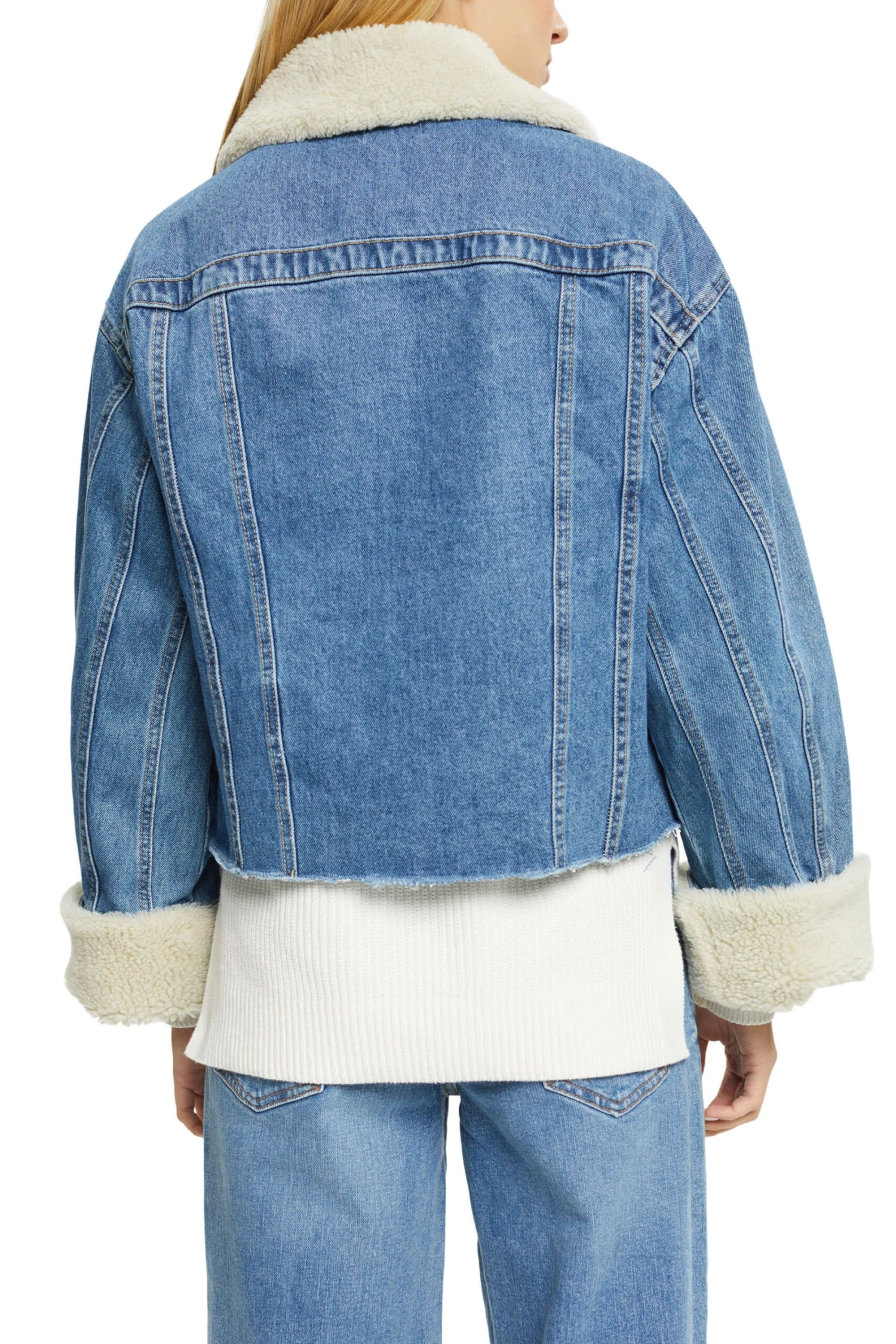 * Denim-Qualität aus reiner Baumwolle * Fake Fur-Besatz am Umlegekragen, entlang der Knopfleiste und am Ärmelabschluss * Zwei Brusttaschen mit geknöpften Patten * Cropped-Länge, Oversize-Schnitt Pflegehinweise: 30°C Pflegeleicht, Nicht bleichen, Nicht im Wäschetrockner trocknen, Mäßig heiß bügeln, Nicht trockenreinigen