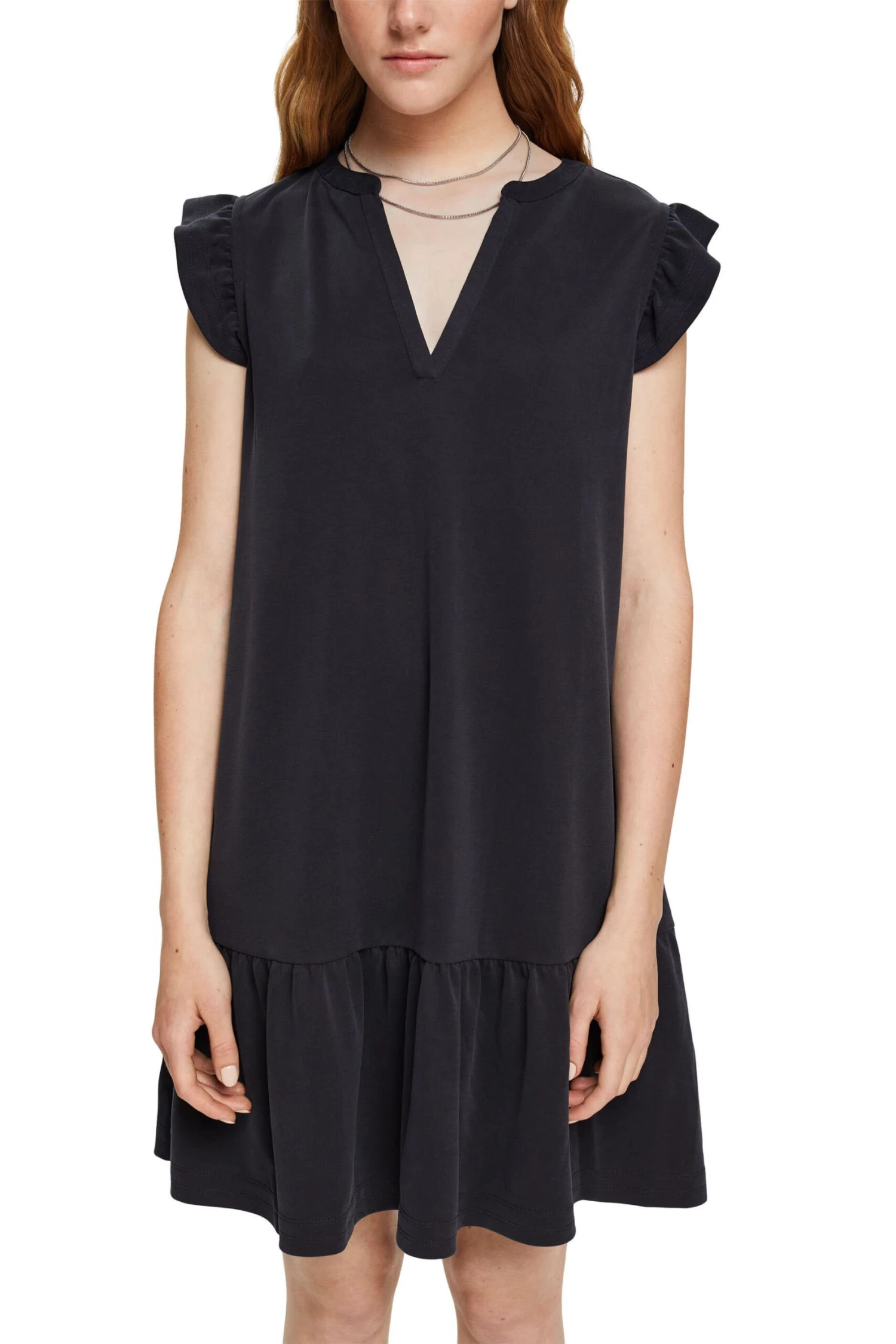 * Fließender Jerseyweichem Modal und pflegeleichtem Material * Kelchausschnitt * Volant-Details an Ärmeln und Saum * Luftige, ausgestellte Silhouette Pflegehinweise: 30°C Pflegeleicht, Nicht bleichen, Nicht im Wäschetrockner trocknen, Mäßig heiß bügeln, Nicht trockenreinigen