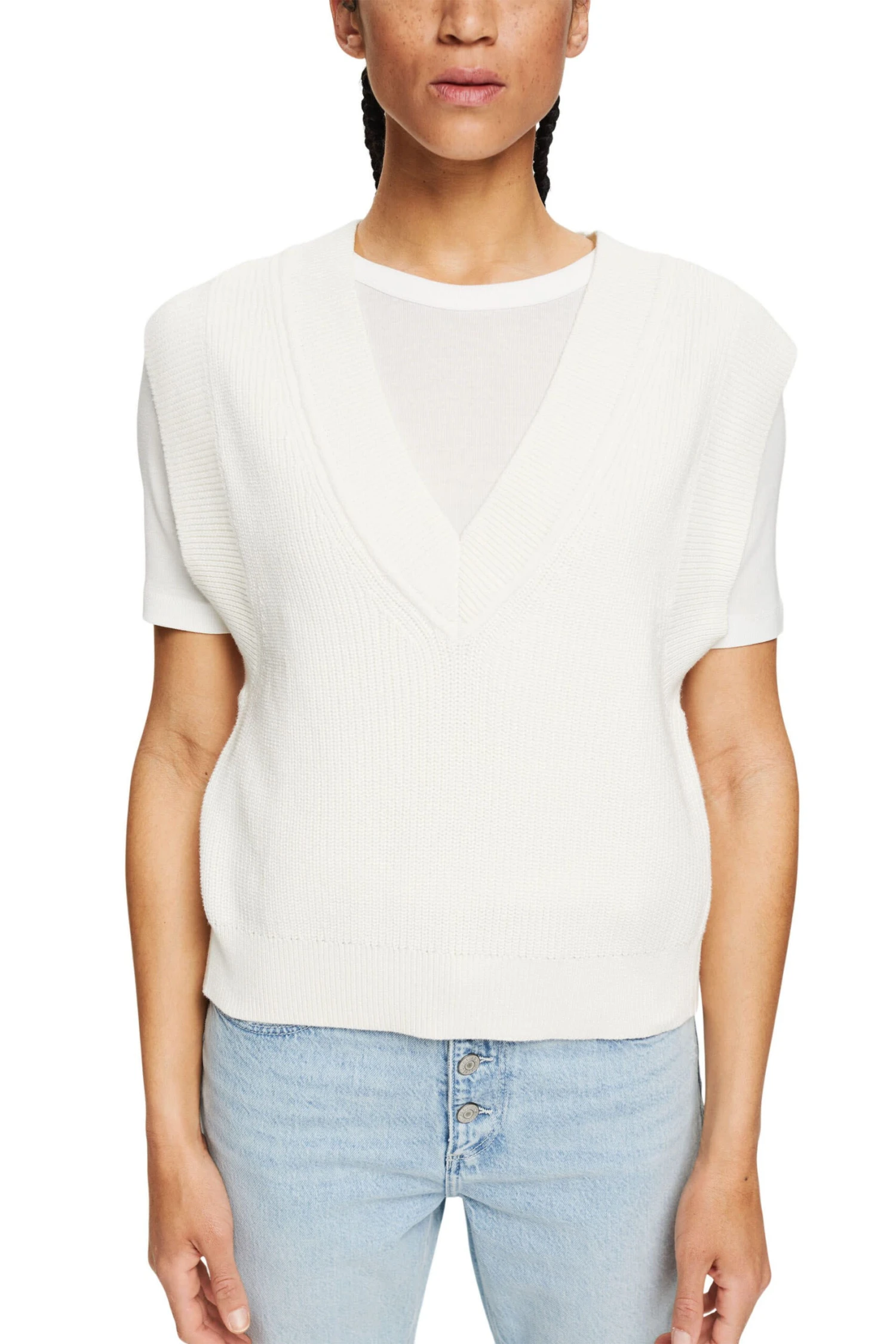 * Strick aus reiner Baumwolle * Tiefer V-Ausschnitt * Rücken-Design mit Cut-Outs und Schlitzen * Gerippte Abschlüsse * Gerade Passform Pflegehinweise: 40°C Pflegeleicht, Nicht bleichen, Nicht im Wäschetrockner trocknen, Mäßig heiß bügeln, Nicht trockenreinigen